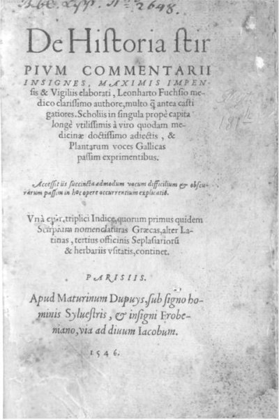 Fuchs Leonhart● De historia stirpium commentarii insignes● Lyon : Balthazar Arnoullet ; [Paris] : Maturin Dupuys● 1546● BP16 : 112459 . USTC : 79596 . 2 langues : Français ♢ Latin ♢