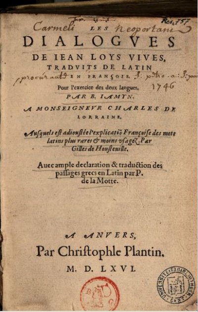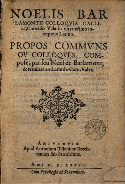 Berlaimont Noël (de)]● Colloquia et dictionariolum octo linguarum, latinae, gallicae, belgicae, teutonicae, hispanicae, italicae, anglicae et portugallicae● Anvers : Hendrik I Aertssens● 1630● USTC : 5036216 , 3014879 , 1435702 , 1002576 . Beaulieux, 1904 : p.375 , «Barlaimont, Barlamont, Berlemont ou Berlaimont (Noel de). ». Bingen, 1987 : p.21 et 31, n°63.