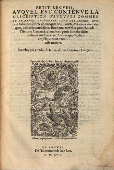 Estienne Charles]● De latinis et graecis nominibus arborum, fruticum, herbarum, piscium et avium liber● Paris : Robert I Estienne● 1547● DE LATINIS ET GRAECIS || nominibus arborum, fructicum, herbarum, piscium, || & auium Liber : ex Aristotele, Theophrasto, Dio- || scoride, Galeno, AEtio, Paulo AEgineta, Actuario, || Nicandro, Athenaeo, Oppiano, AEliano, Plinio, Her- || molao Barbaro, & Iohanne Ruellio : cum Gallica || eorum nominum appellatione. || TERTIA AEDITIO. || [device : tree and man] || LVTETIAE, || Ex officina Rob. Stephani typographi Regij. || M. D. XLVII. || CVM PRIVILEGIO REGIS. USTC ● BP16 : BP16_112759 . USTC : 88523 . Beaulieux, 1904 : p.382 , «Estienne (Charles). ». Lindemann, 1994 : p.564, «[Charles ESTIENNE]».