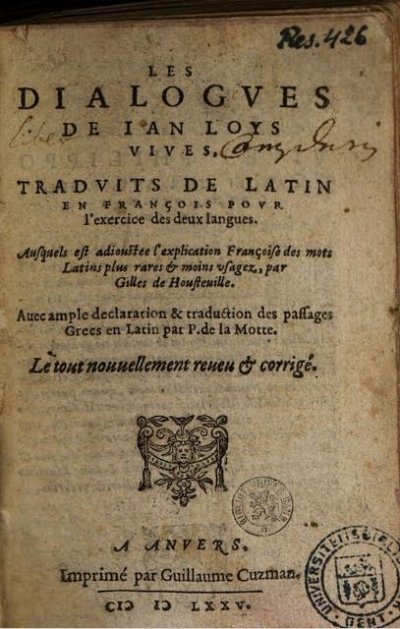 Berlaimont Noël (de)]● Colloquia et dictionariolum septem linguarum, Belgicae, Anglicae, Teutonicae, Latinae, Italicae, Hispanicae, Gallicae● Liège : Henricus Hovius● 1610● USTC : 5040396 , 3004291 , 1436610 , 1116924 . Bingen, 1987 : p.21 et 29, n°46.
