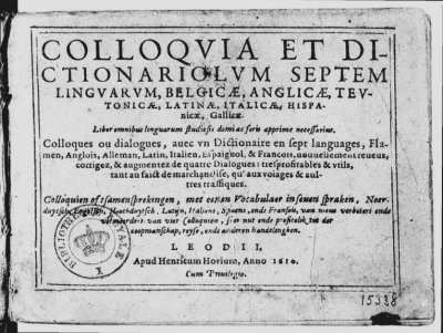 1. Colloquia et dictionariolum septem linguarum. Liège : Hovium, 1610. In Flemish, Latin, French, German, Spanish, Italian and English.