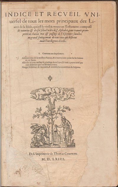 ▨ Indice et recueil universel de tous les mots principaux des livres de la Bible qui est le vieil & nouveau Testament : composé de nouveau & dressé selon l’ordre de l’Alphabet