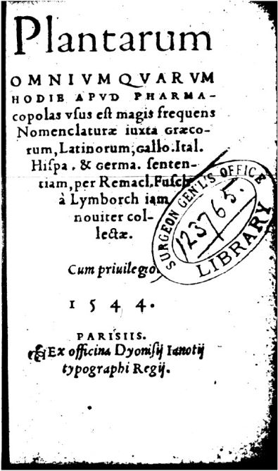 Fuchs Remaclus● Plantarum omnium, quarum hodie apud pharmacopolas usus est magis frequens nomenclaturae juxta Grecorum, Latinorum, Gallorum, Italorum, Hispanorum et Germanorum sententiam● Paris : Denis Janot● 1541● BP16 : BP16_110289 . USTC : 140266 . 6 langues : Allemand ♢ Espagnol ♢ Français ♢ Grec ♢ Italien ♢ Latin ♢