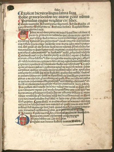 Jouenneaux Guy● Interpretatio in Laurentii Vallae elegantias Latinae linguaeGW/ISTC/USTC● Paris : Wolfgang Hopyl● (1490)GW/ISTC● Guidonis Juvenalis [...] ĩ latine lingue elegantias tam a laurētio valla q,a Gelio memorie ˛pditas ĩterp̃tatio dilucida [...] Lind94 ● GW : M15890 . ISTC : ij00667800 . USTC : 761219 . Lindemann, 1994 : p.584, «Guido JUVENALIS».