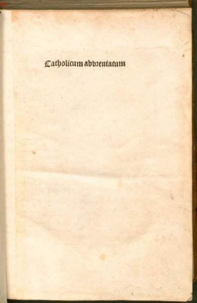 « Caillaut c.1482 (C1) Caillaut named his dictionary Catholicum abbreviatum, as shown on the title page of the only existing copy of his first edition (see Plate 5). This edition is dated c.1492 by GKW (VI : 259, n° 6233), but we believe this dating to be incorrect. We conclude, from careful scrutiny of Caillaut’s manuscript and all of his editions, that this edition was the earliest of the three, and we have provisionally assigned it a date of c.1482. » (SHAW, 1997 : 4.2.1. Antoine Caillaut, Paris).