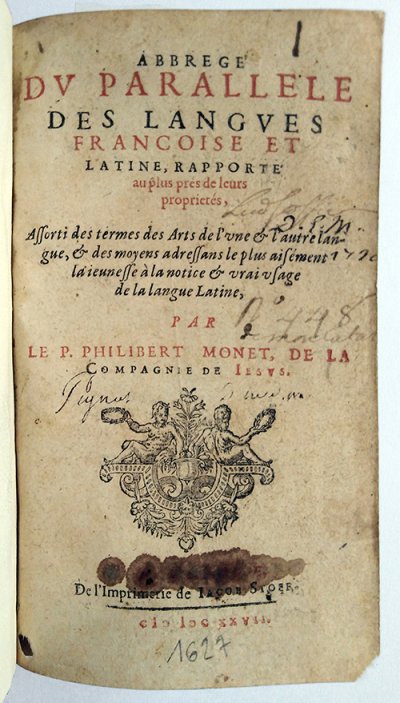 Monet Philibert● Abrégé du parallèle des langues française et latine● Genève : [s.n.]● 1635● USTC : 6701529 . 2 langues : Français ♢ Latin ♢