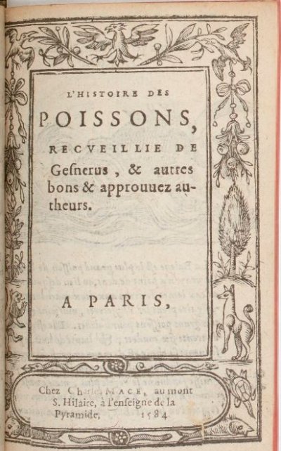 Linocier Geoffroy  L’histoire des poissons Paris : Charles Macé  1584